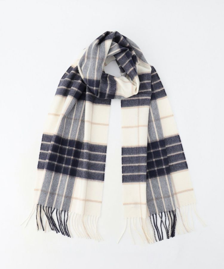 ブロックチェックとタータンチェック、2種類のチェック柄がラインナップするマフラーです。素材は上品な光沢を備えたカシミヤ100%の生地になっています。表面をアザミの実で起毛させることで、なめらかで心地よい肌触りに仕上げています。