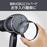 本体には静電気を抑えるマイナスイオン発生機能を搭載しています。乾燥中の髪のまとまりを意識する方にも使いやすく、ノズルの形状も風を均一に当てやすいよう配慮されています。また、フック付きで収納も簡単です。複雑な機能を求めず、風量と使いやすさを重視する方に適したシンプルモデルです。