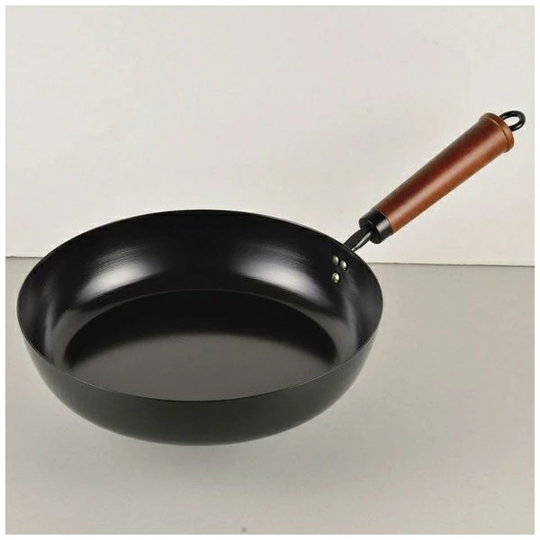 遠藤商事は1953年に創立されている老舗卸商社です。底は暑く、側面は薄く作られており、重量をおさえつつもムラのない熱の拡がりを実現した鉄フライパン。楽に扱うことができ、調理もしやいです。