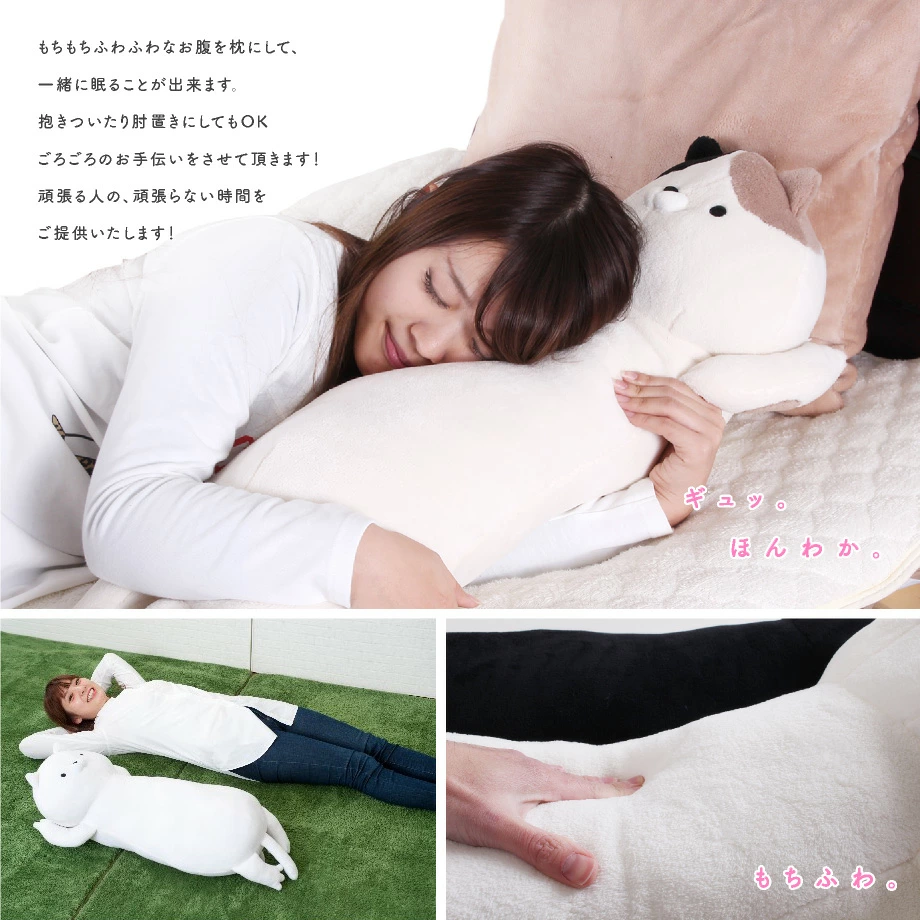 ぬいぐるみ型の抱き枕。しっとり、もちもちしている触り心地を楽しむことができ、抱き心地もしっかりフィットして気持ちが良いです。