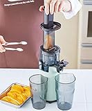 野菜の絞りカスとジュースを別々のカップに絞り出せるジューサーです。野菜や果物を無駄にせずに使い切りたい方におすすめです。搾りカスは専用の排出口から出てくるため、カップに入れてすぐに料理に使えます。搾りカスの量が一目で分かるのもメリットです。