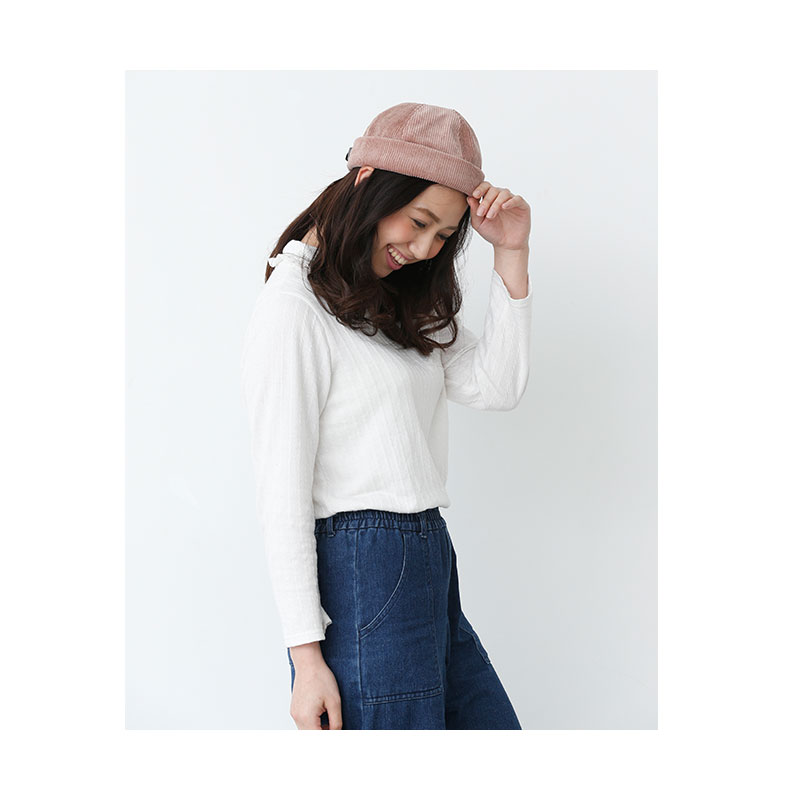 折り返しのないシンプルなビーニータイプは、あごがシャープな逆三角形の輪郭の方におすすめのタイプになります。端を立たせて被ると顔と帽子のバランスがよくなります。