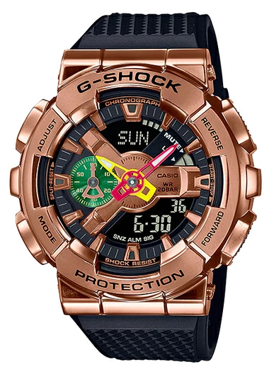 メタルデザインの新境地を追求し続けているメタルカバードシリーズのGM-110をベースに、NBAのプロバスケットボールプレーヤーである八村塁選手が監修したG-SHOCKです。バンドが2本セットになっていて、シンプルなブラックと個性的なケンテパターンの2WAY仕様。その時の気分やファッションに合わせて付け替える事が出来ます。