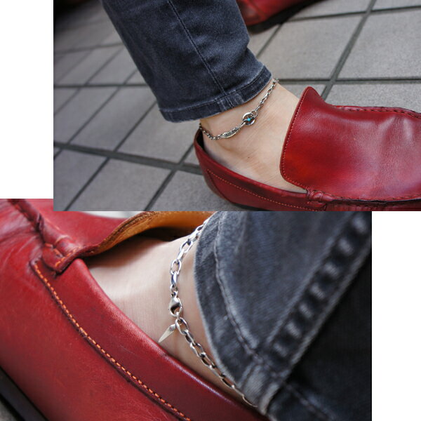 足元にあえて大きなモチーフをつけてインパクト抜群のメンズらしい仕上がりになっているアンクレットです。アジャスターチェーン付きで長さ調整も可能になっています。