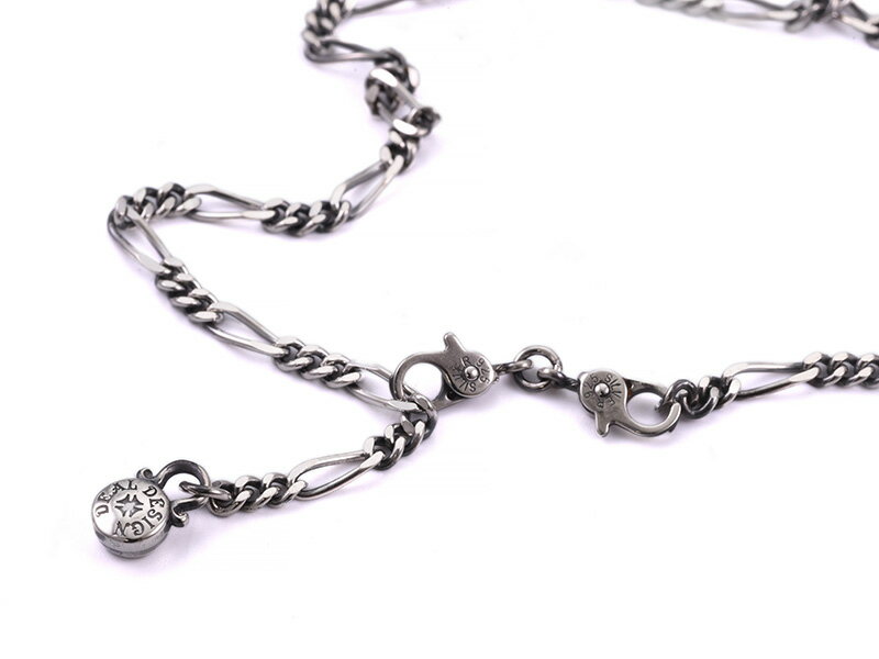 ネイティブ系ジュエリーでは定番のモチーフですが、エッジの効いたモダンなデザインです。チェーン先端部にはシャープなチャームが付いています。留め具は好きな位置で留められるのでサイズ調節もある程度利く構造です。