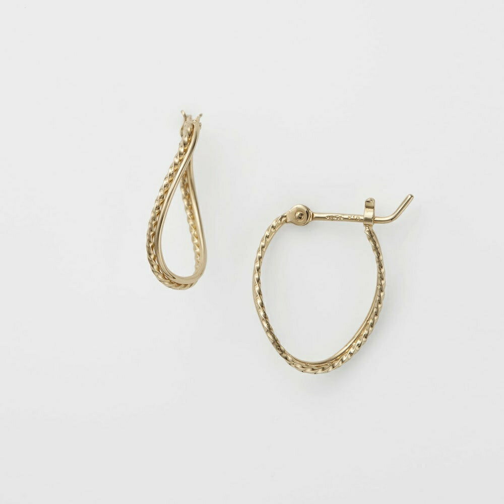 こちらは、表情の違う線であたたかみのあるK18ピアスになります。ピアスチャームとのコーディネートはもちろん、ひとつで着けても満足感のあるボリュームです。