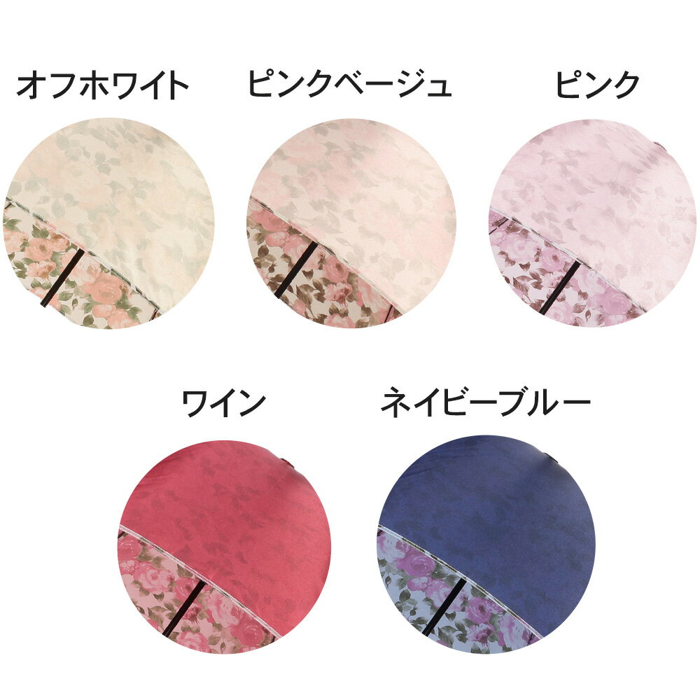 傘の裏地に花柄プリントがあしらわれたレディース長傘です。表地から柄がほんのり透けて見える、控えめな華やかさが魅力になります。パーツがすべてゴールドトーンで統一されており、エレガントな印象です。