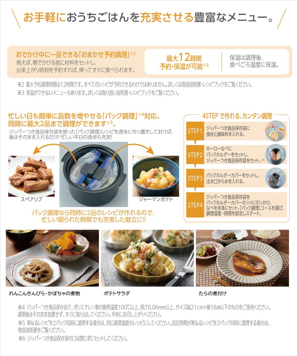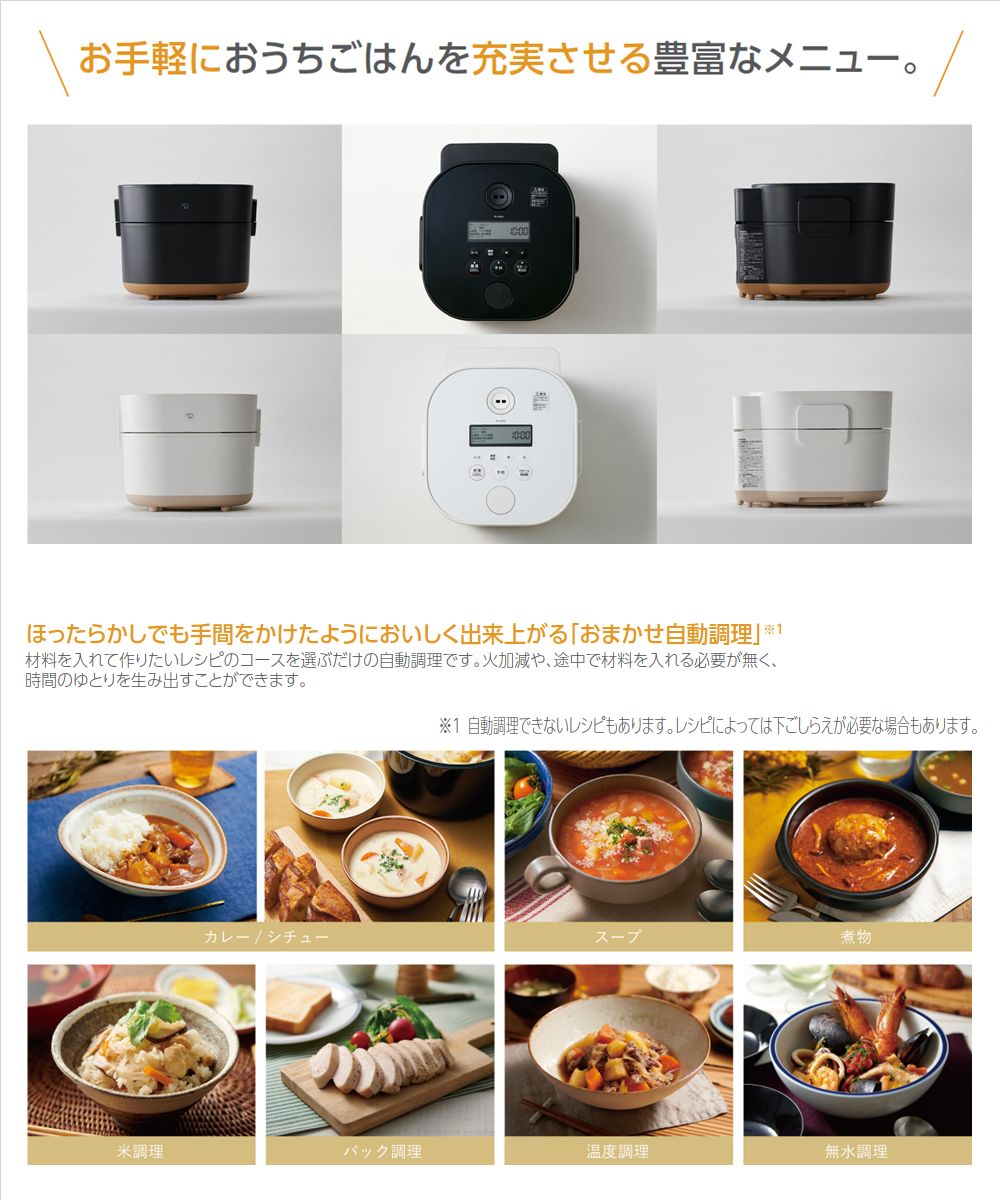 暮らしに寄り添う便利な家電を展開する日本メーカー「象印マホービン」の自動調理なべです。材料を入れてコースを選択するだけで、カレーや煮物などのおまかせ調理が可能。忙しい社会人の毎日の食事作りをサポートします。