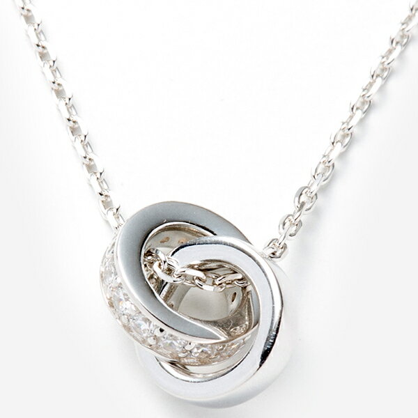 変色しにくい4℃のオリジナル素材、4℃エターナルシルバーを使用したネックレス。人気のダブルループにキュービックを連ねたボリューム感のあるジュエリーに仕上がっています。