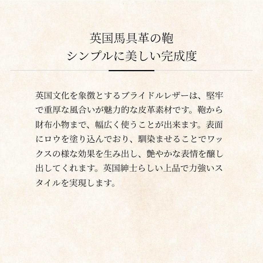 英国で馬具用に作られていたブライドルレザーを使用した重厚感あふれるコレクションのビジネスバッグです。全体的にハードなフォルムに仕立てており、見るからに重厚感を感じます。天然皮革を丁寧に日本の熟練工が仕立てていますので、温かみと品格を醸し出し、お洒落な革鞄を堪能できます。