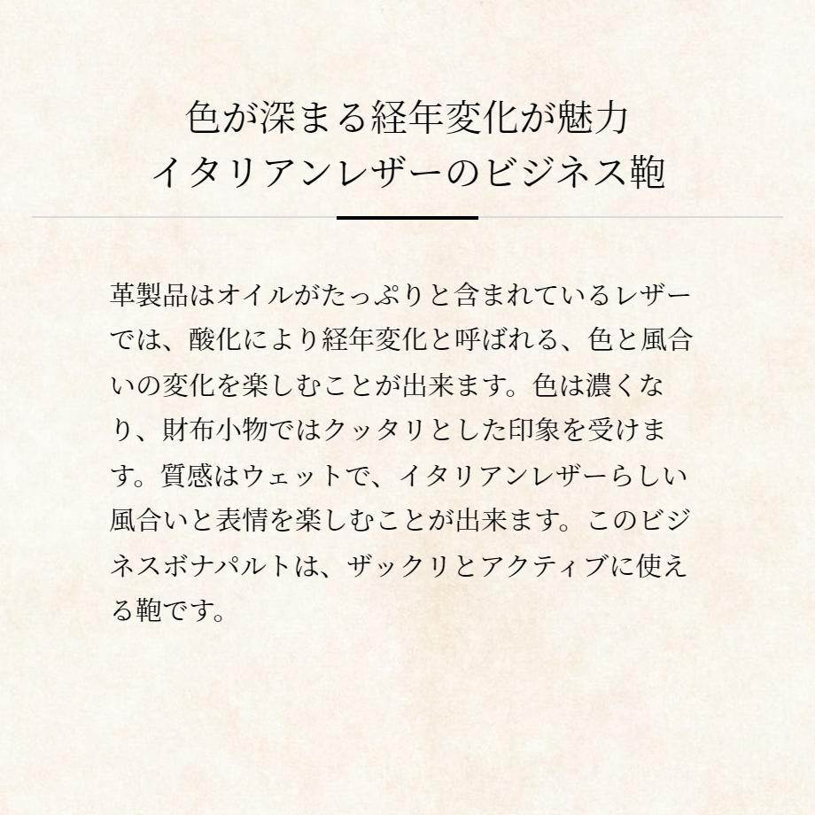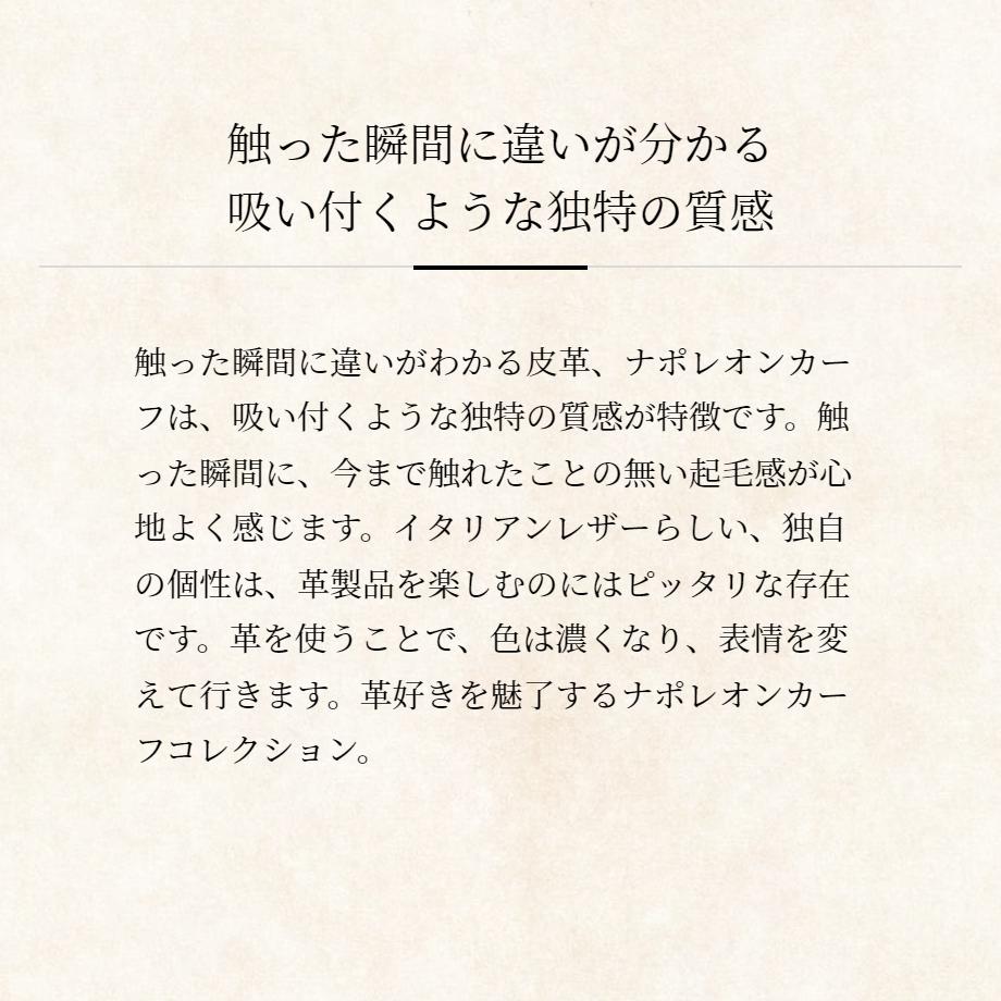 脅威の経年変化を楽しむイタリアンレザーを使用したナポレオンカーフコレクションのビジネスバッグです。革そのものを起毛させたヌバックは質感がウェットで、独特の風合いを楽しめます。