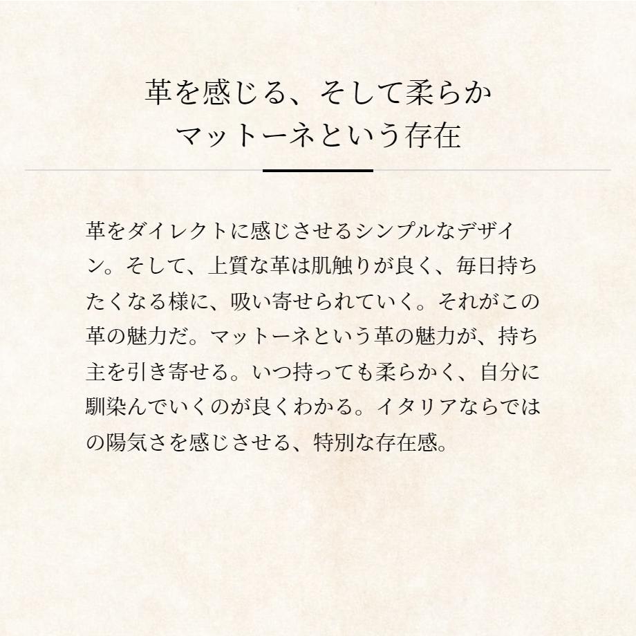 イタリアのトスカーナ地方で作られた非常に歴史のある革を使用したマットーネシリーズです。上質な革で仕立ててあるので、持っているだけでワンランク雰囲気を格上げしてくれます。
