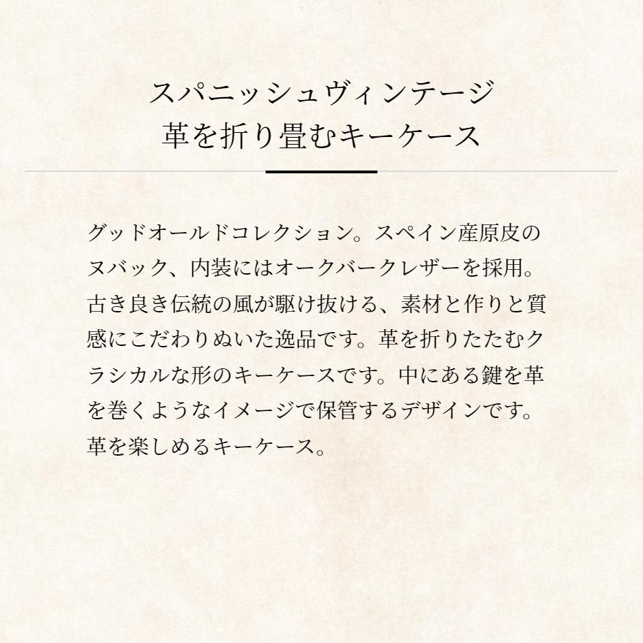 古き良き時代のモノづくりを実現したグッドオールドコレクションのキーケースです。革本来の風合いを生かしたワイルドさと、上品ヴィンテージなオーラが見事に調和しています。