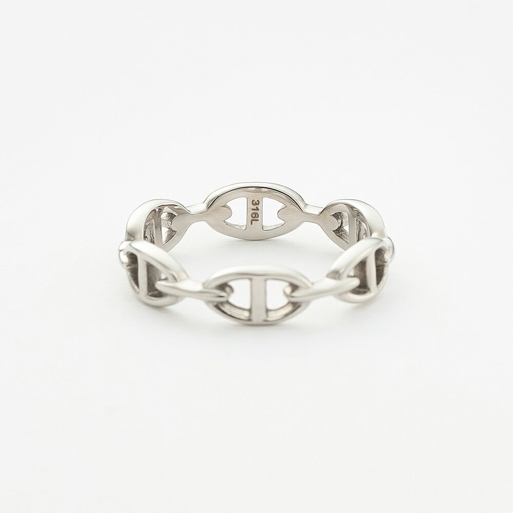 アンカーチェーン(錨鎖)からインスパイアされた、連なりのあるモチーフが特徴のリングです。