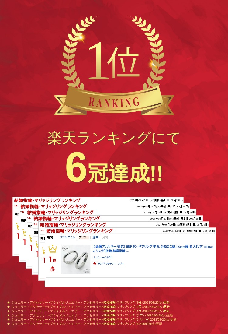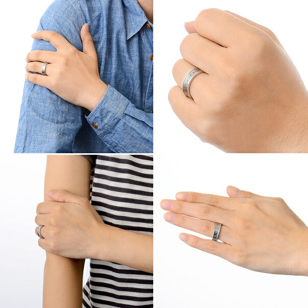 純度99.4%以上の純チタンを使用したペアリングです。金属アレルギーを起こしにくいのが特徴。温泉や海でも変色しにくいと謳われており、長く身に着けられます。